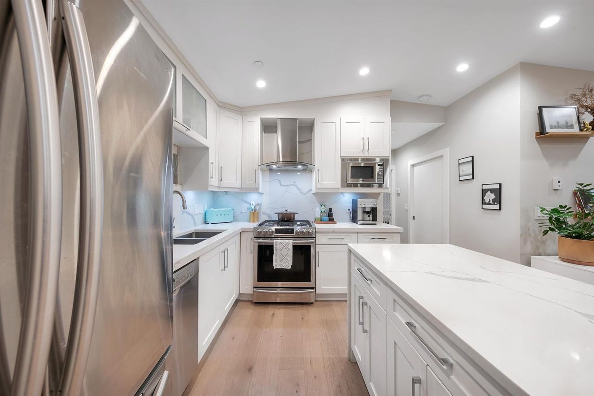Say hello to the most incredible opportunity to have your own fully-detached 3 bed 2.5 bath coach house in Fraser! Built in 2018, this 1,050 sf home feels significantly larger due to the amazing layout and abundance of storage space. Downstairs is your 186 sf attached garage with in-floor radiant heat, bedroom, bathroom, laundry and entry. Upstairs is your expansive living and dining room with gas range, gas fireplace, stunning island and 9'4 peaked ceilings plus principal bedroom with ensuite bath and large closet, 2nd bathroom for guests and 3rd bedroom. Because this home is fully detached, you enjoy natural light from all 4 directions. Two top floor patios (North & South facing) plus a private 263 sf S-facing ground floor patio makes this feel like a SFH! Come fall in love! Call for your private viewing and fall in love!