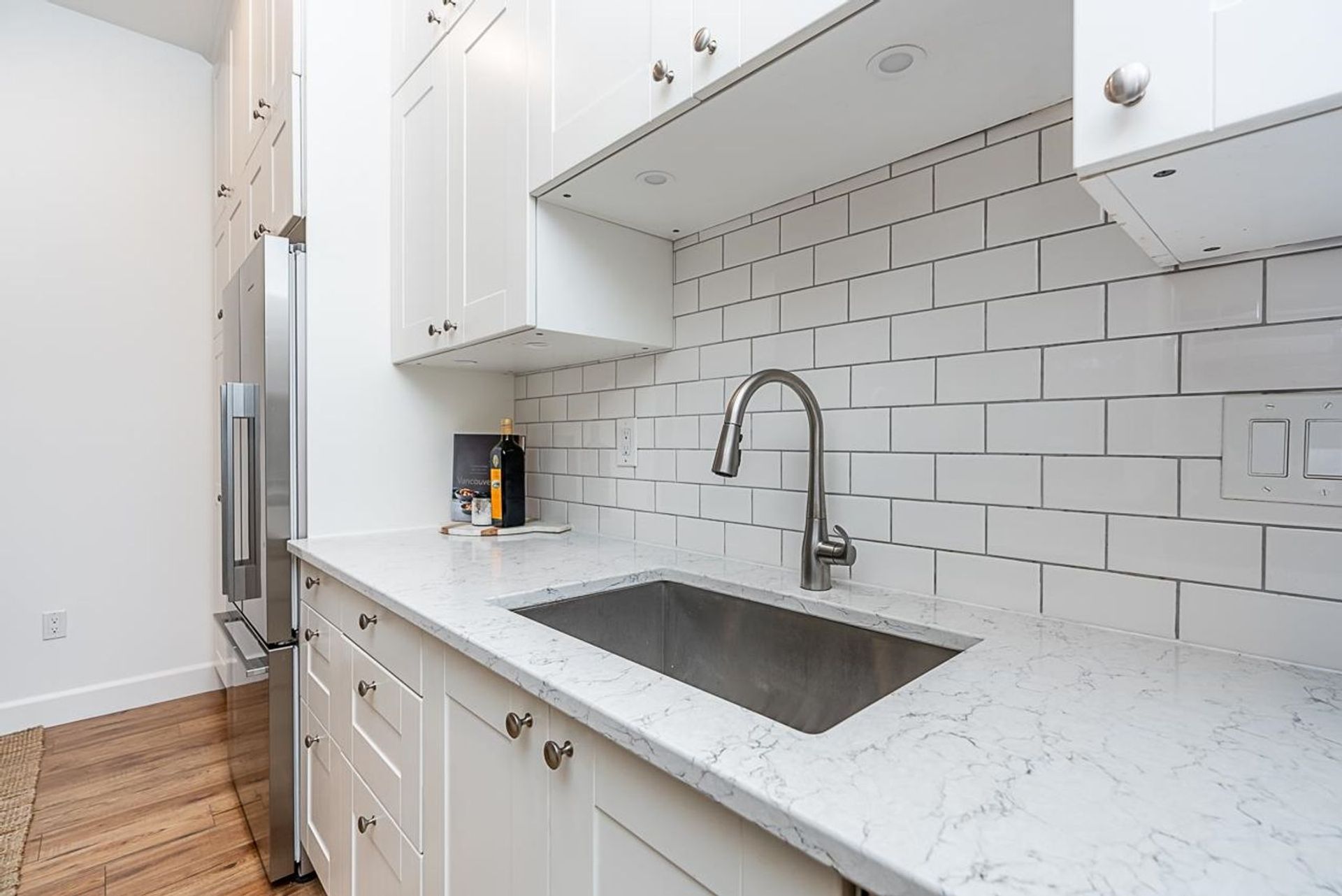 Welcome to your beautifully renovated Fairview home that's North-facing so it's quiet and serene! Fully renovated in 2016, this 665 sf 1 bed 1 bed condo has 9'10 ceilings plus high end finishings and an enormous 550 sf North-facing patio off the living space. Nothing was skipped - new floors, new lighting, open kitchen with Quartz counters, new cabinets and extensive storage throughout, Fisher Paykel appliance package, Miele washer and dryer, new bathroom and an electric fireplace. Pets and rentals over 30 days welcome here! Comes with 1 parking and 1 storage in a great building that brings the best Fairview has to offer. Come fall in love before it's gone! Open Sat. Feb. 11th from 2 - 4 PM and Sun. Feb. 12th from 12 Noon - 2 PM.