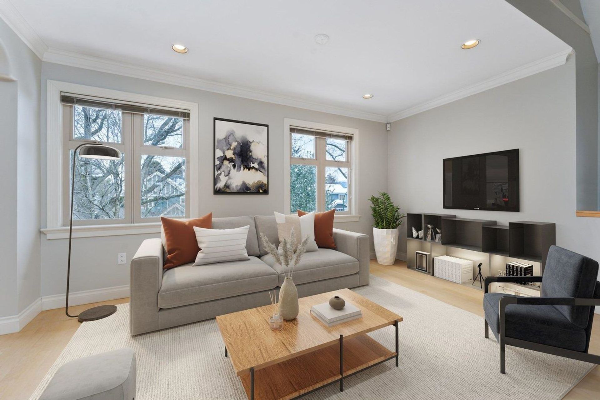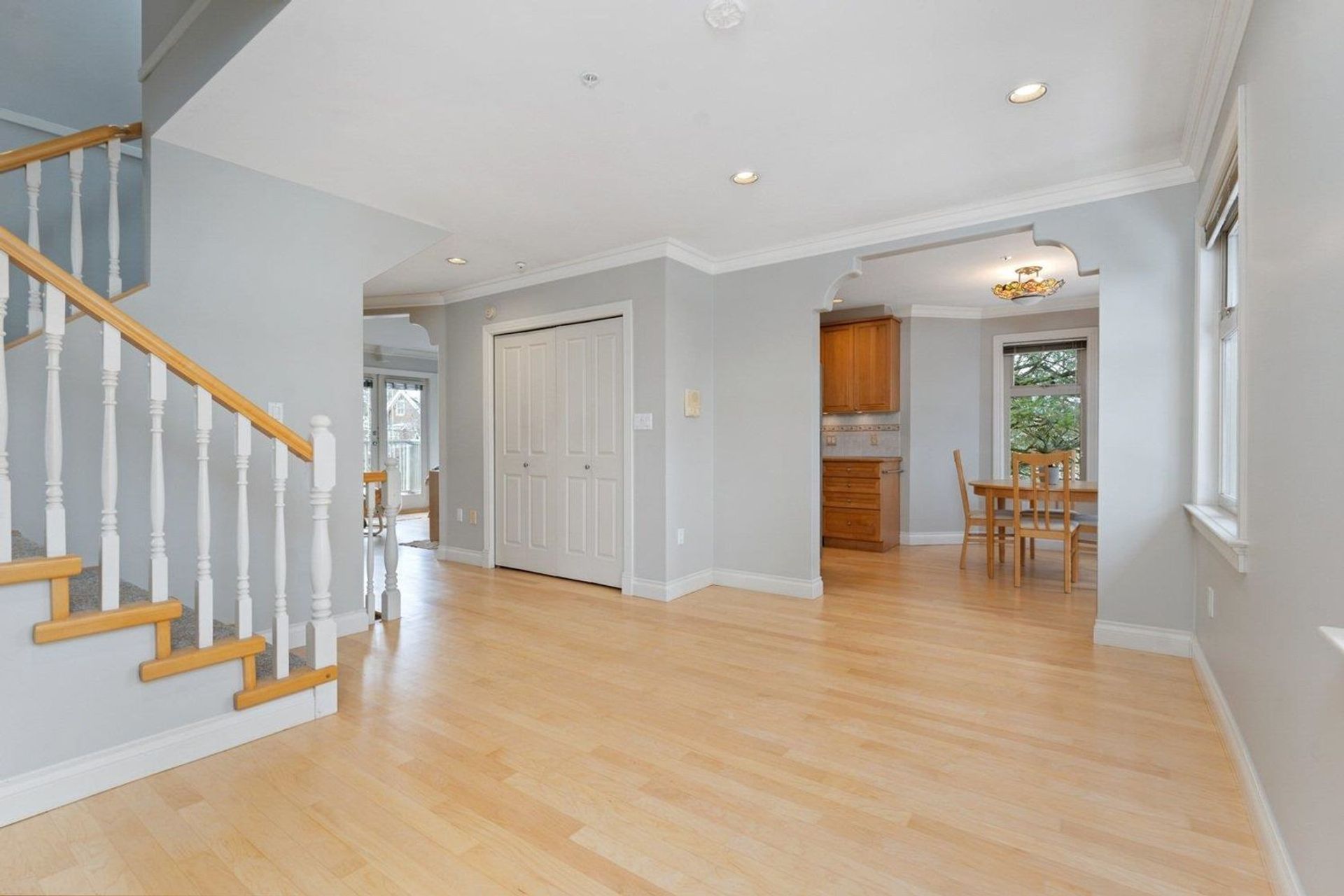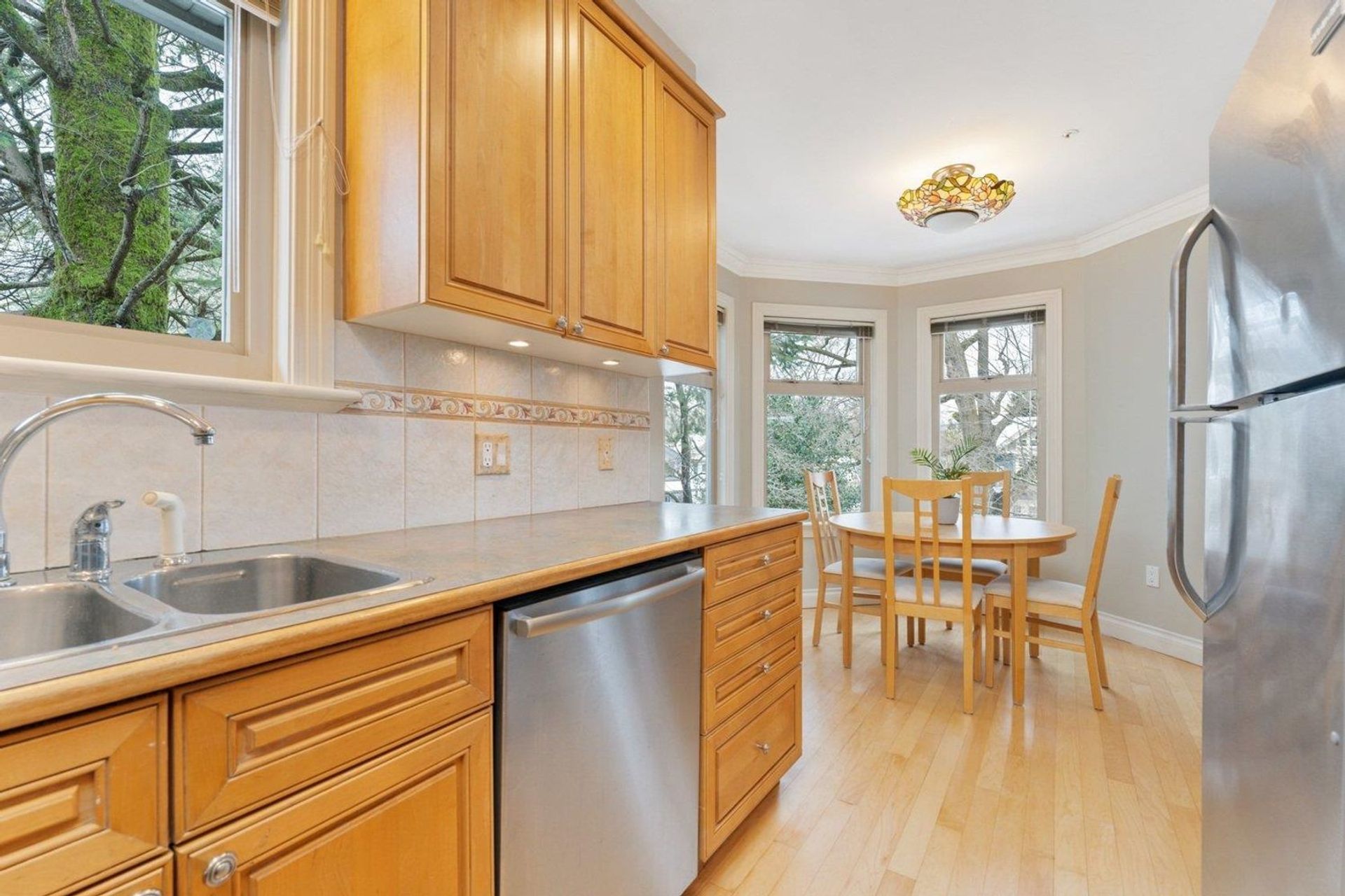 Bright and spacious 3 bedroom unit occupies upper two floors of charming heritage style triplex in the Cambie corridor neighborhood . Corner unit with tons of natural light from its many large windows has been freshly painted, has floors refinished and new carpet throughout. Family room and large eating area with mountain views off the kitchen. Living room with cozy gas fireplace and access to your private south facing deck with awning. Upper floor with vaulted ceilings and tons of storage includes Master bedroom with ensuite & jacuzzi and bedroom with Juliette balcony. Minutes walk to shopping, restaurants and Cambie street transit station. Radiant in floor heating, built in vacuum and so much more to list ••• come and see your new home.