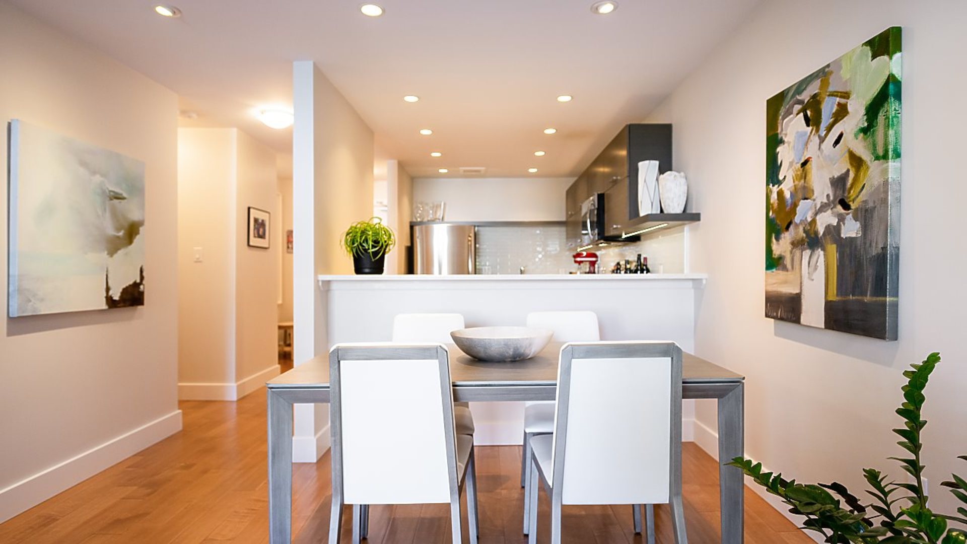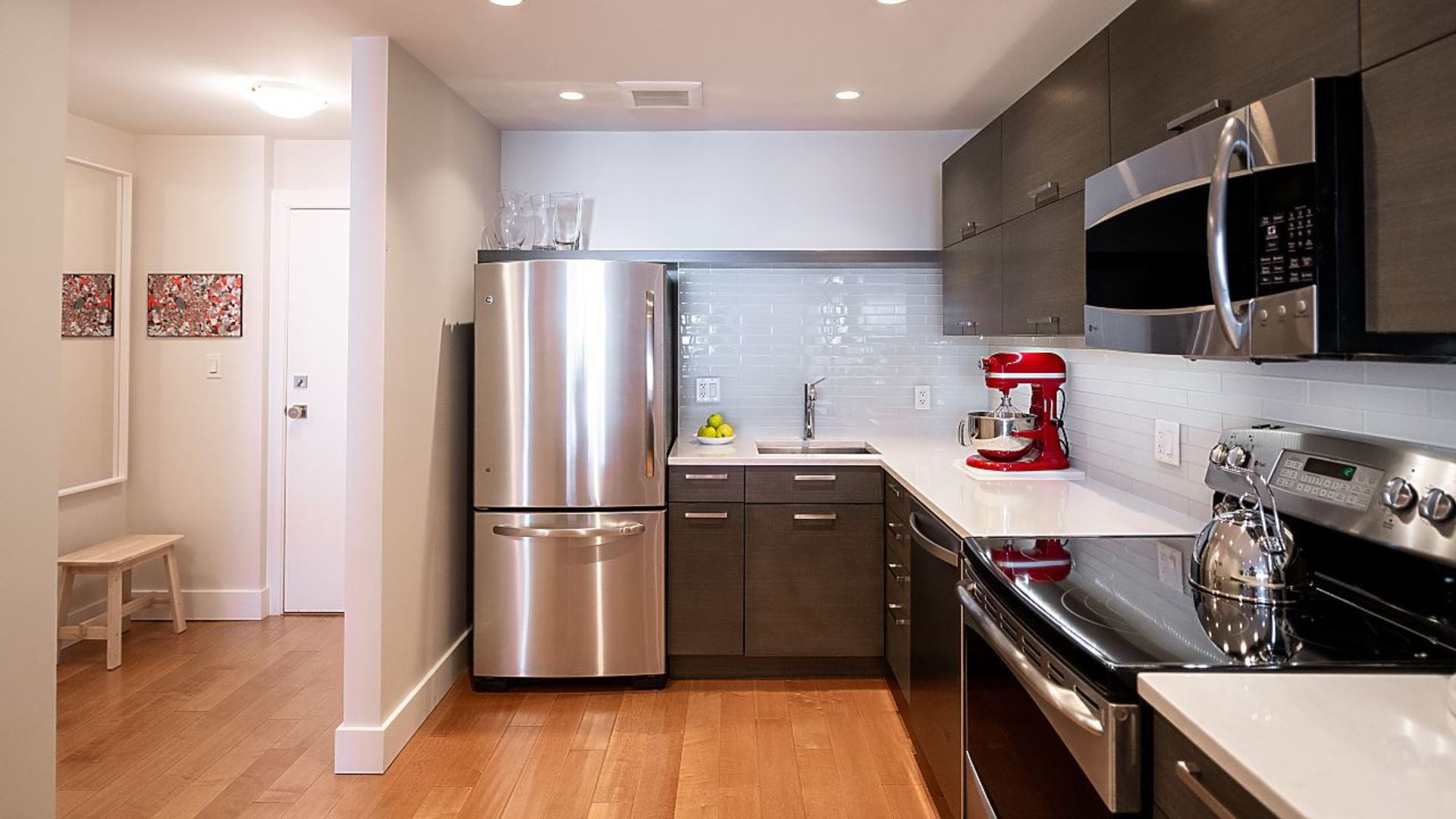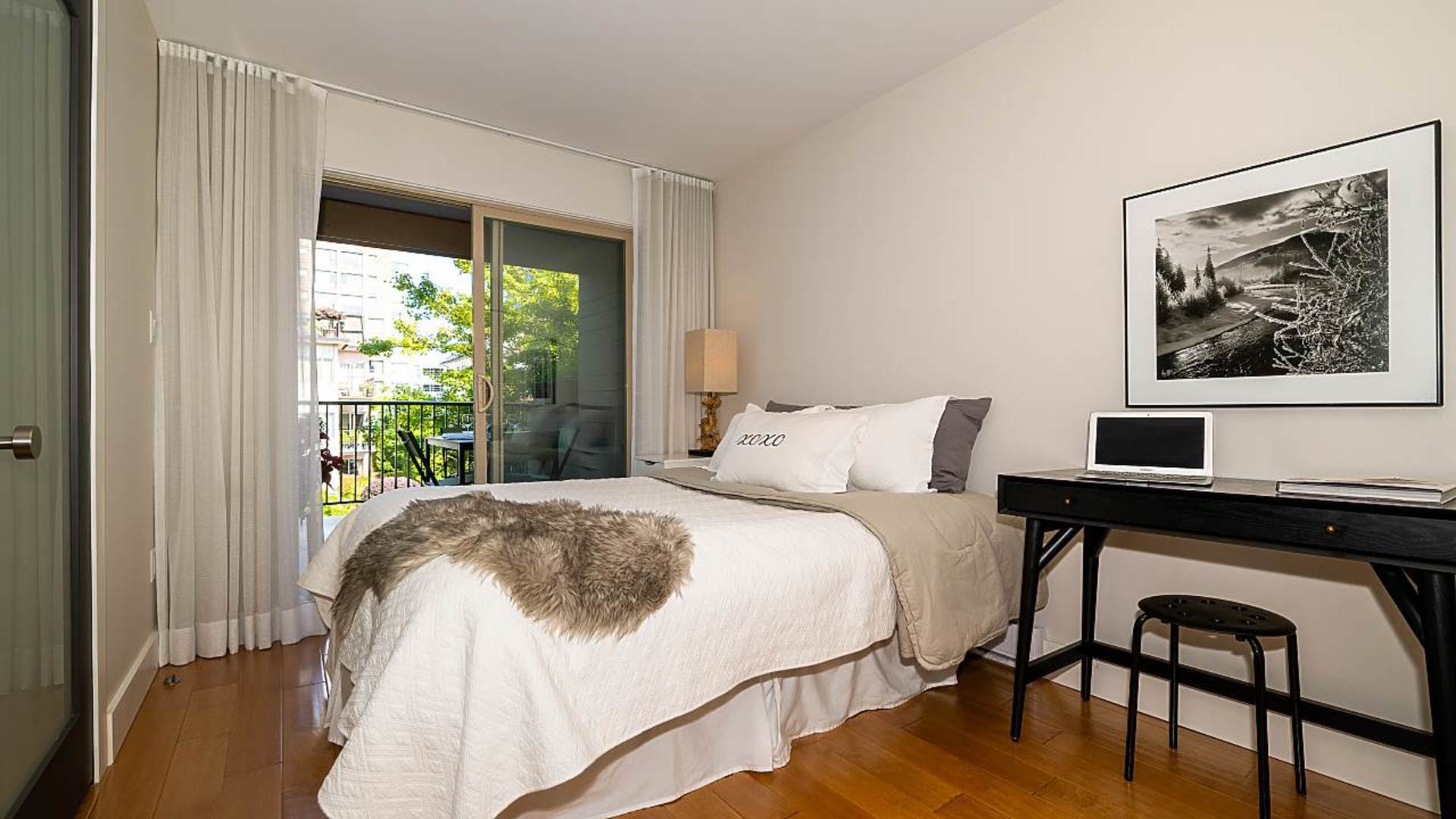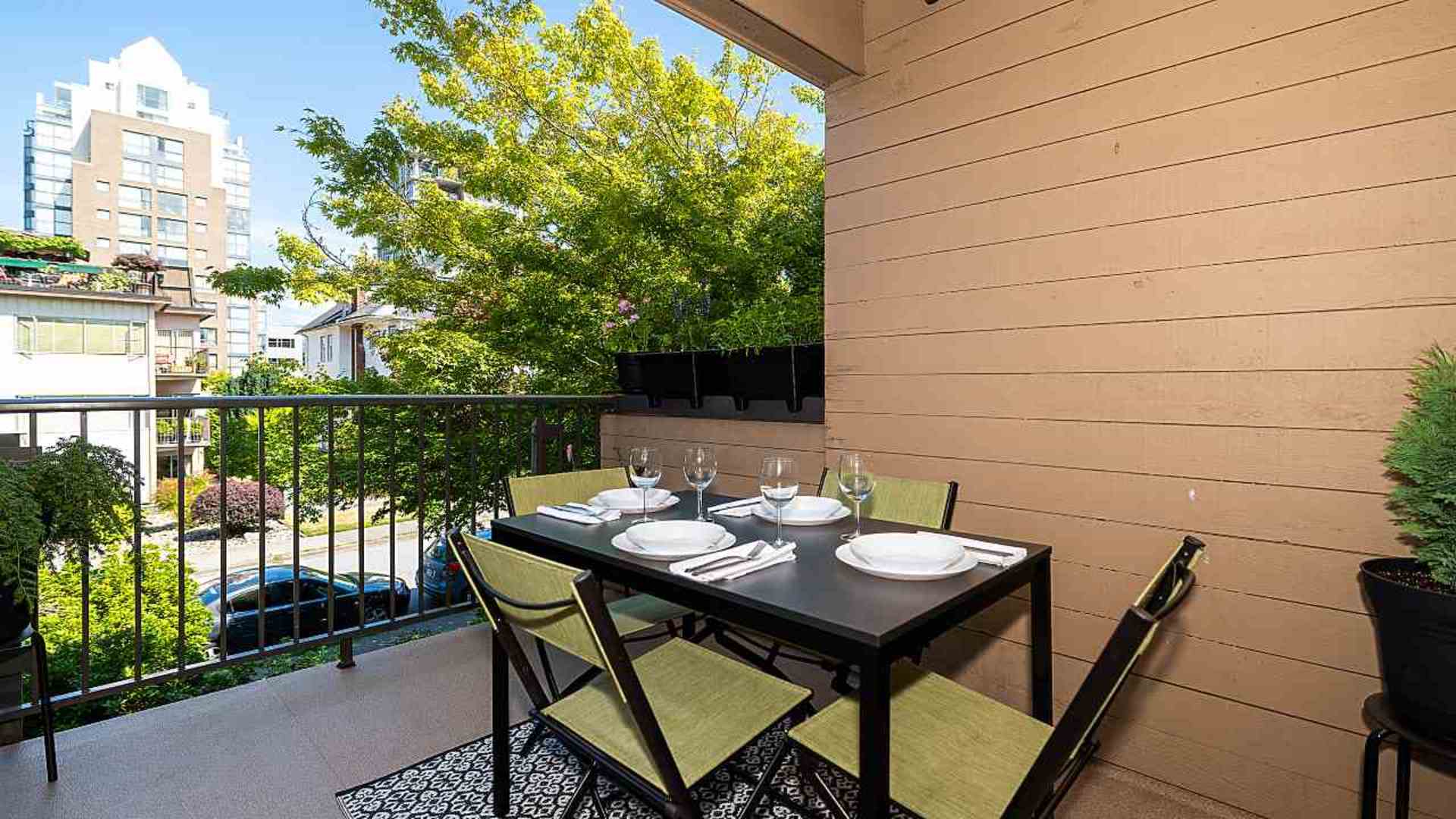 The perfectionist in you will love every stylish detail of this gorgeous 2 bedroom condo that was stripped to the studs in 2013 and completely renovated with permits. Features include all new wiring, new adjustable puck lighting, new sound insulation, new sleek frosted-glass panelled doors and hardware, new Maple hardwood floors, new enlarged chef’s kitchen, new bathroom with huge walk-in shower, and the list goes on! And this rain-screened building is in excellent shape too, with roof, boiler, and plumbing risers replaced in recent years. BBQ’s allowed on the entertainment-size 126 sq. ft. balcony. 1 parking & storage locker in underground parkade. Wonderfully quiet location close to West Broadway and South Granville shops.