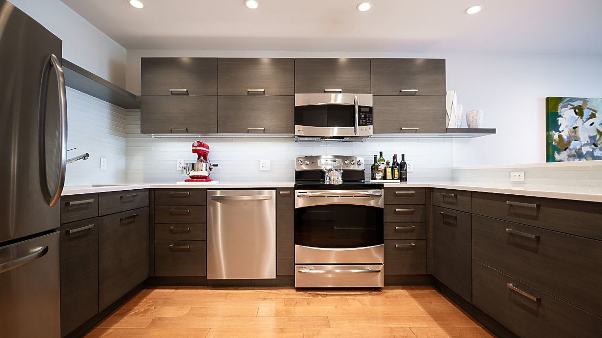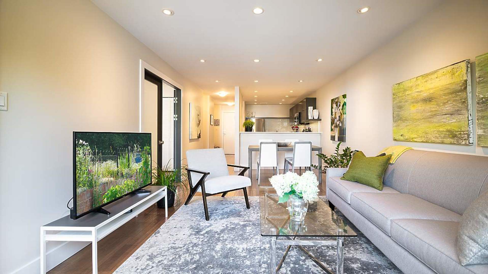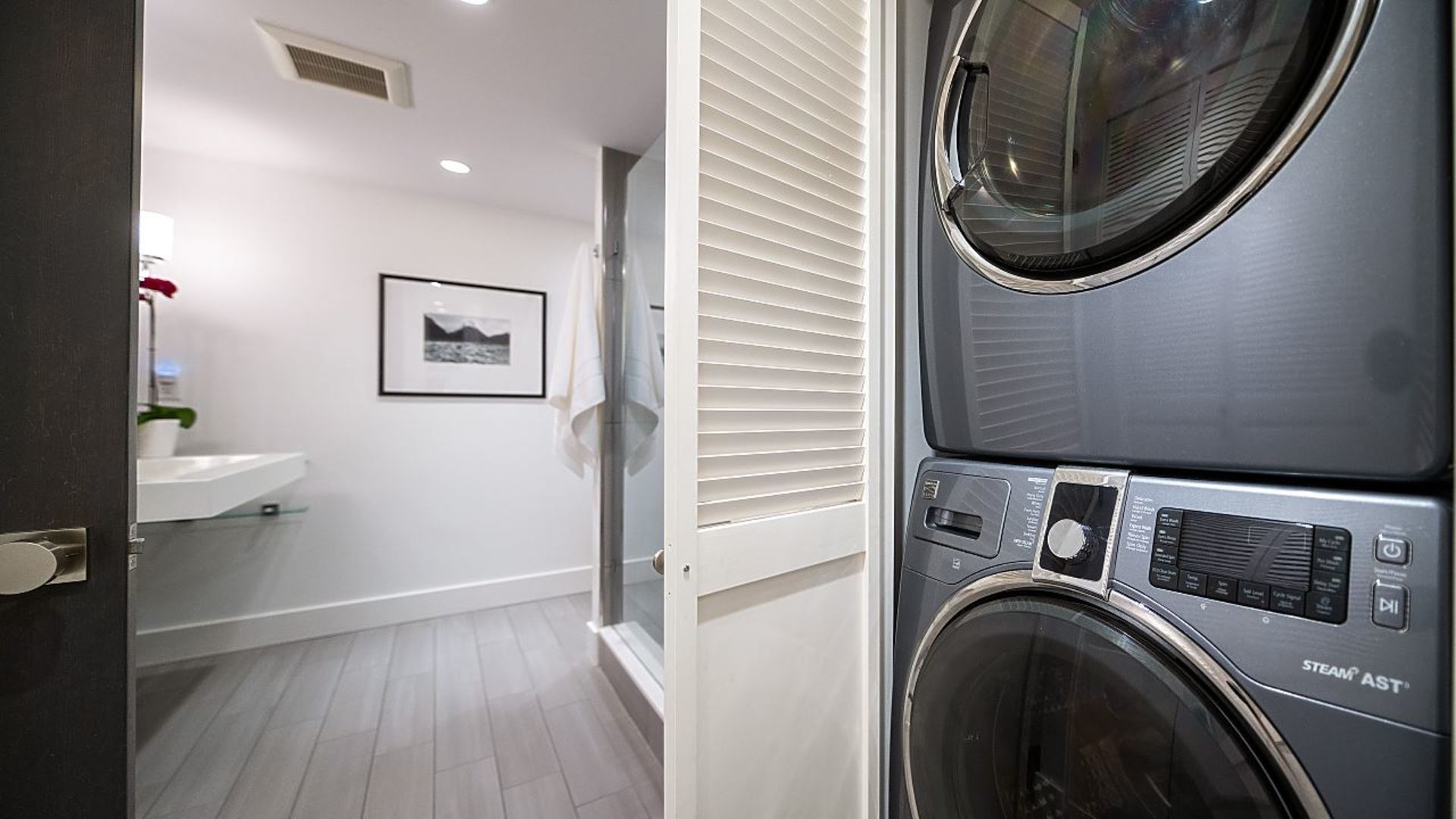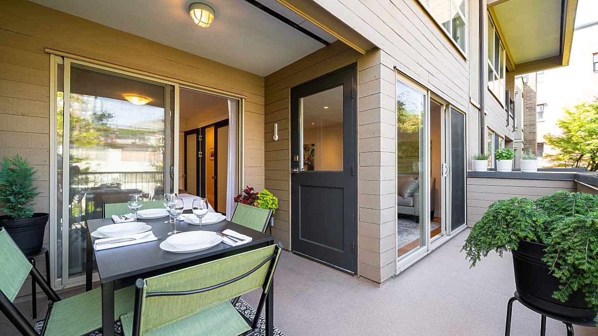 The perfectionist in you will love every stylish detail of this gorgeous 2 bedroom condo that was stripped to the studs in 2013 and completely renovated with permits. Features include all new wiring, new adjustable puck lighting, new sound insulation, new sleek frosted-glass panelled doors and hardware, new Maple hardwood floors, new enlarged chef’s kitchen, new bathroom with huge walk-in shower, and the list goes on! And this rain-screened building is in excellent shape too, with roof, boiler, and plumbing risers replaced in recent years. BBQ’s allowed on the entertainment-size 126 sq. ft. balcony. 1 parking & storage locker in underground parkade. Wonderfully quiet location close to West Broadway and South Granville shops.